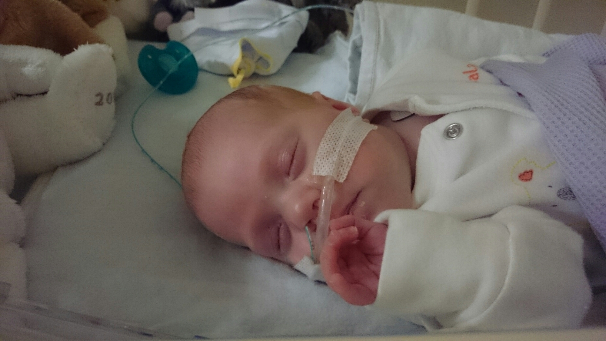 SJ is happily settling back into a different bed in the old room. The pressures was changed and her flow rate decreased to 5.0 yesterday. Her oxygen requirements have been good and averaging around 23-25% but the steriods are still coming out of her system so this might creep up a little. Plan for today is to keep her in 5.0 and start trying breast feeding again (we had a break over the last week with surgery and recovery).